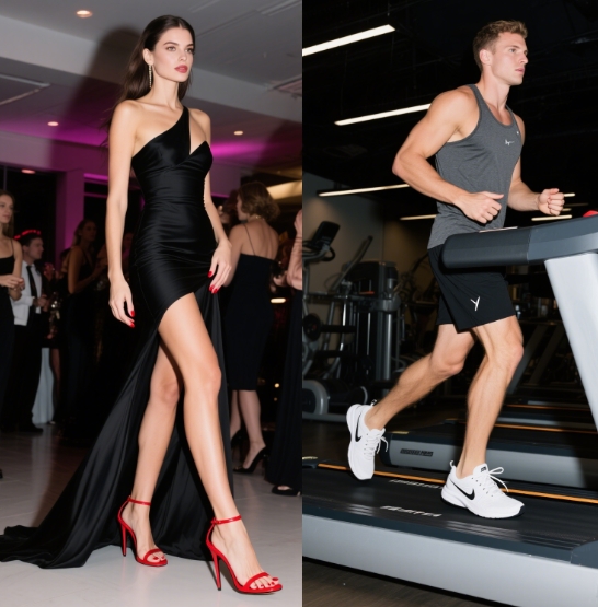 Sneakers are not just for sports; they can also be a sexy choice. For men, a pair of stylish and well-designed running sneakers can convey a sense of athleticism and energy. When paired with athletic shorts or joggers, they show off your active lifestyle and a fit physique. A pair of white sneakers with sleek lines and modern details can be particularly attractive. Women can also rock sneakers in a sexy way. A pair of high-top sneakers, especially when paired with a short skirt or shorts, can create a contrast between the sporty shoes and the feminine outfit, adding an edgy and sexy touch. You can choose sneakers in bold colors or with unique patterns to make a statement. Sneakers are great for casual outings, gym dates, or outdoor activities, where you want to look both comfortable and sexy.